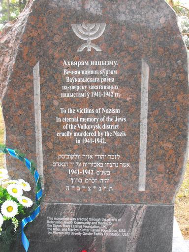| Keywords: Ghetto Volkovysk 3c.jpg ru Волковыск у очище По оховня те ито ия го одского кладбища емо иальный знак в память ев еев Волковысского айона же тв гитле овского геноцида в емен Вто ой ми овой войны Установлен в октяб е 2012 года 2012-10-11 12 40 33 own Avner cc-zero Ghetto Vawkavysk Uploaded with UploadWizard |