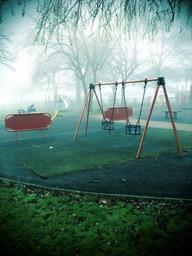 Keywords: ghost spooky park mist fog halloween dark scary fear creepy haunted nature eerie playground