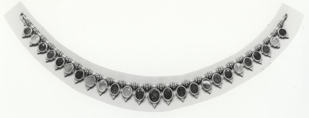 Keywords: Giacinto Melillo - Archaeological-Style Necklace with Intaglios - Walters 571534.jpg The Castellani workshop was famous for its copies of ancient jewelry and this necklace has been attributed Giacinto Melillo one of Alessandro Castellani's apprentices and protégés another similar necklace in the Walters collection 57 1530 bears his mark on the clasp In 1865 he took over Castellani's workshop in Naples which Henry Walters visited in 1903 late 19th-early 20th century gold sardonyx agate rock crystal cm 35 56 accession number 57 1534 3818 Henry Walters city Baltimore Walters Art Museum Henry Walters Acquired by Henry Walters 1903 Jewelry - Ancient to Modern The Walters Art Gallery Baltimore 1979-1980 Objects of Adornment Five Thousand Years of Jewelry from the Walters Art Gallery Baltimore Cooper-Hewitt National Design Museum New York; Chrysler Museum of Art Norfolk; Carnegie Museum of Art Pittsburgh; San Antonio Museum of Art San Antonio; Philbrook Museum of Art Tulsa; Honolulu Academy of Arts Honolulu; New Orleans Museum of Art New Orleans; Milwaukee Art Museum Milwaukee; Minneapolis Institute of Arts Minneapolis; Toledo Museum of Art Toledo; The John and Mable Ringling Museum of Art Sarasota 1984-1987 Jewelry from the Walters Art Museum and the Zucker Family Collection The Walters Art Gallery Baltimore 1987 Bedazzled 5 000 Years of Jewelry from the Walters Art Museum Frist Center for the Visual Arts Nashville; The John and Mable Ringling Museum of Art Sarasota; The Walters Art Museum Baltimore 2006-2009 place of origin Naples Italy PD-old-auto 1915 Jewellery in the Walters Art Museum Giacinto Melillo Media contributed by the Walters Art Museum needs category review Media contributed by the Walters Art Museum needs artist update |