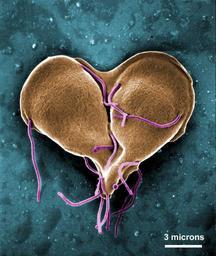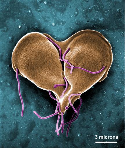 | Keywords: Giardia lamblia.bmp.jpg  en This digitally-colorized scanning electron micrograph SEM depicted a Giardia lamblia protozoan that was about to become two separate organisms as it was caught in a late stage of cell division producing a heart-shaped form The protozoan Giardia causes the diarrheal disease called giardiasis Giardia species exist as free-swimming by means of flagella trophozoites and as egg-shaped cysts It is the cystic stage which facilitates the survival of these organisms under harsh environmental conditions The cyst is considered the infective form and disease is often transmitted by drinking contaminated water As depicted in these SEMs in the intestine cysts are stimulated to liberate trophozoites Cysts can be shed in fecal material and can thereafter remain viable for several months in appropriate environmental conditions Cysts can also be transferred directly from person-to-person as a result of poor hygiene 1999 http //phil cdc gov/phil/details asp Dr Stan Erlandsen other versions Custom license marker 2015 05 13 http //phil cdc gov/phil/details asp Dr Stan Erlandsen Uploaded with UploadWizard Scanning electron microscopic images |