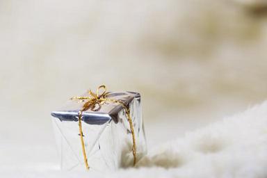 Keywords: gift winter snow Christmas New Year greeting card background silver gold ribbon white copy space