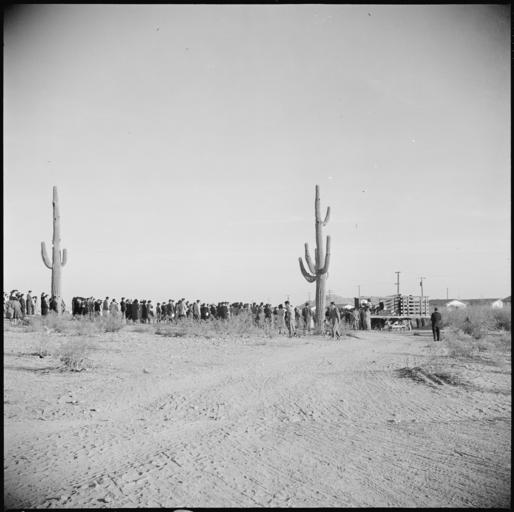 Keywords: Gila River Relocation Center, Rivers, Arizona. Sunrise Services (Christian) were held at this cente . . . - NARA - 538616.jpg Scope and content The full caption for this photograph reads Gila River Relocation Center Rivers Arizona Sunrise Services Christian were held at this center Thanksgiving day General notes 538616 Local identifier 210-G-D655 Department of the Interior War Relocation Authority 02/16/1944 - 06/30/1946 NARA-Author Stewart Francis War Relocation Authority photographer Photographer 8464475 <br /> Still Picture Records Section Special Media Archives Services Division NWCS-S National Archives at College Park 8601 Adelphi Road College Park MD 20740-6001 1942-11-26 Record group Record Group 210 Records of the War Relocation Authority 1941 - 1989 Record group ARC 537 Central Photographic File of the War Relocation Authority compiled 1942 - 1945 Series ARC 536000 File unit File unit ARC Variant control numbers NAIL Control Number NWDNS-210-G-D655 Other versions <gallery> File Gila_River_Relocation_Center _Rivers _Arizona _Sunrise_Services_ Christian _were_held_at_this_cente_ _ _ _-_NARA_-_538616 tif tif File Gila_River_Relocation_Center _Rivers _Arizona _Sunrise_Services_ Christian _were_held_at_this_cente_ _ _ _-_NARA_-_538616 jpg jpg </gallery> NARA-cooperation PD-USGov Gila River War Relocation Center