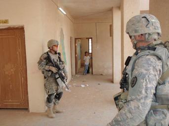 Keywords: Gimlets lend helping hand to residents of Aqur Quf DVIDS86850.jpg en A child watches Soldiers from 1st Platoon Company C 1st Battalion 21st Infantry Regiment Gimlet 2nd Stryker Cavalry Regiment Multi-National Division “ Baghdad at a school in Aqur Quf west of Baghdad April 28 The Soldiers passed out school supplies to the students and teachers U S Army photo/21st Infantry Regiment 2nd Stryker Cavalry Regiment 2008-04-28 https //www dvidshub net/image/86850 86850 2008-05-05 14 31 BAGHDAD IQ PD-USGov 21st Infantry Regiment United States Images from DoD uploaded by Fæ |