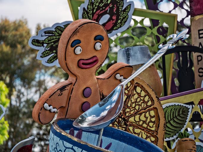Keywords: ginger bread man life size face giant spoon decoration food homemade creative float celebration festival
