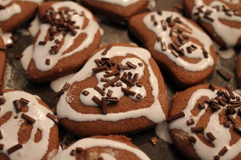 Keywords: gingerbread holidays kitchen sweets chocolate cakes tasty frosting white heart