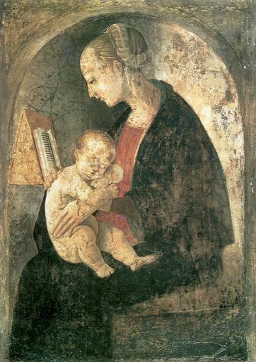 Keywords: Giovanni Santi Madonna and Child with a Book.jpg Artwork Creator Giovanni Santi n/a Fresco 97 x 67 cm Raphael's House Urbino accession number object history credit line http //caccioppoli com/Madonna 20and 20Child 20 28fit 20screen 29/Raffaello/Santi 20Giovanni 20madonna-and-child-with-a-book-2291 20 282 29 jpg PD-Art PD-old-100 Giovanni Santi 15th-century paintings of Madonna and Child