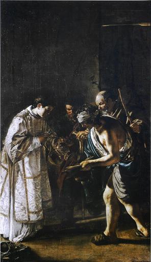 Keywords: Giovanni Serodine Saint Lawrence Distributing Alms.jpg Saint Lawrence Distributing Alms between 1625 1626 oil on canvas Size cm 303 171 Museum of the Casamari Abbey Veroli object history 1625-26 Rome basilica of San Lorenzo fuori le mura first altar in the left aisle; 1862 abbey of Valvisciolo; 1970 current location exhibition history credit line http //www flickr com/photos/54074558 N07/5104809872 on the edge of the carafe oil on canvas PD-old-100 accession number Giovanni Serodine Paintings of Saint Lawrence |