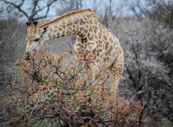 Keywords: giraffe eating animal mammal wildlife wild africa neck safari portrait herbivore wilderness