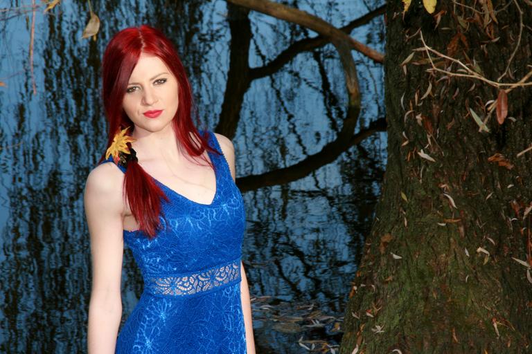 Keywords: girl autumn forest lake red hair beauty vegetation