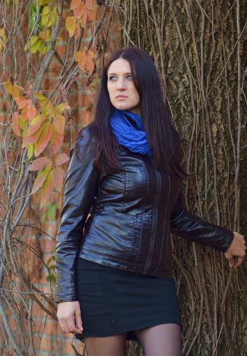 Keywords: girl autumn stroll photoshoot blue shawl outdoors