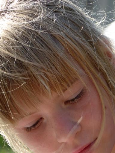 Keywords: girl blond face nose eyes skin wind