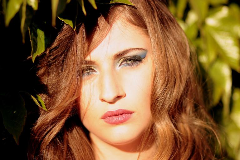 Keywords: girl blonde blue eyes portrait leaves beauty