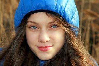 Keywords: girl blue eyes hood blue beauty