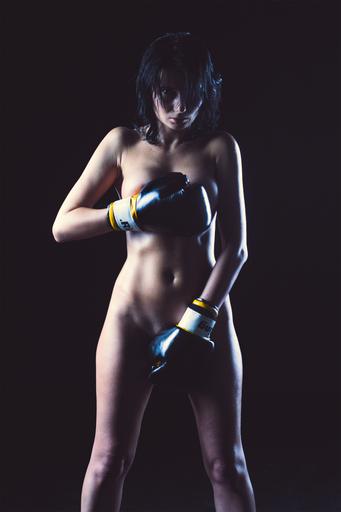 Keywords: girl boxer nude without clothes boxing pear body sports gloves beautiful girl ring hairstyle view hands eyes person woman fashion beauty sexy breast black background