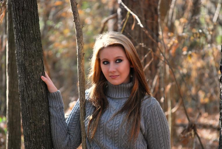 Keywords: girl brunette pretty face trees woods forest nature female young person woman outdoor autumn outside portrait