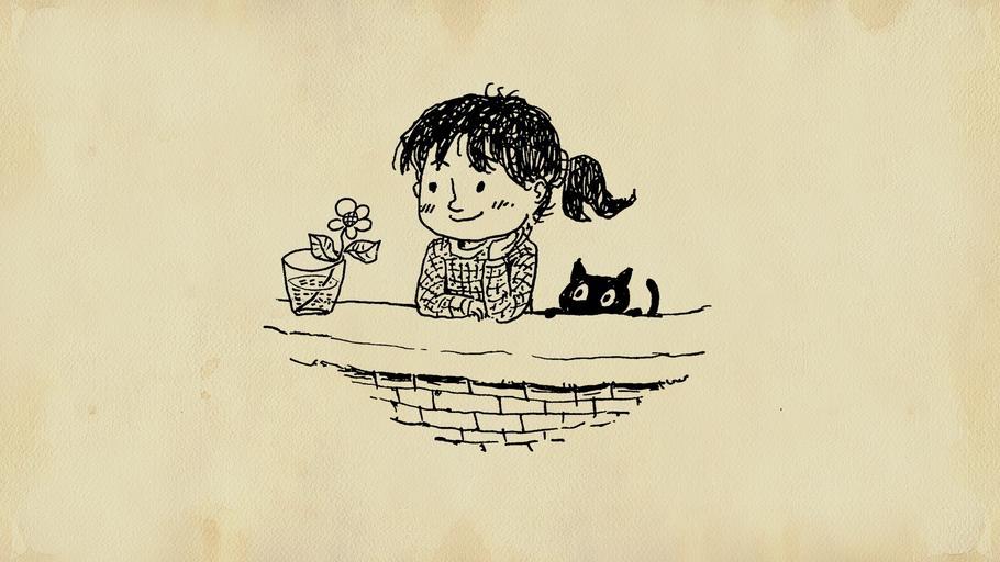 Keywords: girl cat flower fairy tale painting fantasy drawing cartoon joy cute
