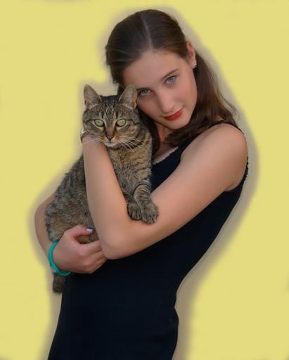 Keywords: girl cat person portrait yellow animal klára lady hold wear
