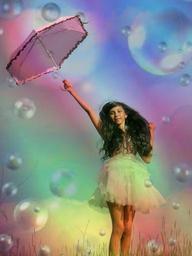 Keywords: girl child bubbles princess umbrella joy summer