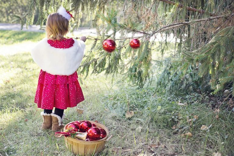 Keywords: girl child christmas girl tree decorating xmas december holiday pine tree