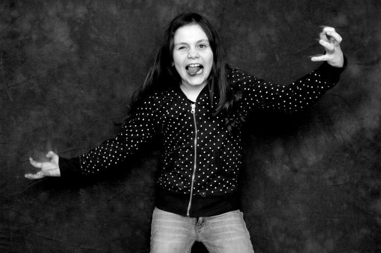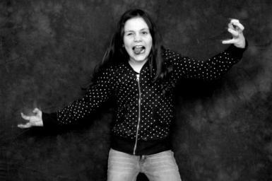 Keywords: girl crazy female young white portrait face funny expression fun happy humor cheerful student excited joy smiling