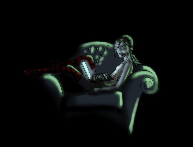 Keywords: girl dark computer artificial light this talk night sofa skype conversation