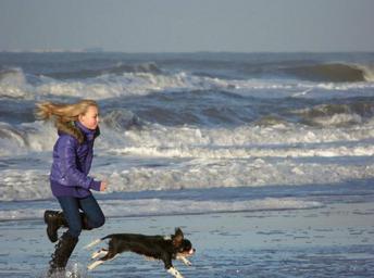 Keywords: girl dog sea beach zandvoort race play