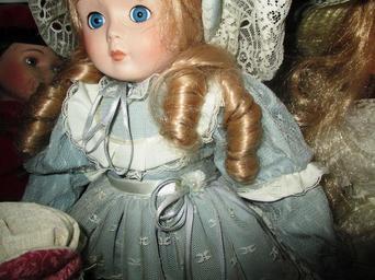 Keywords: girl doll fabric lure blond eyes blue pin curls hutkrempe stylistically