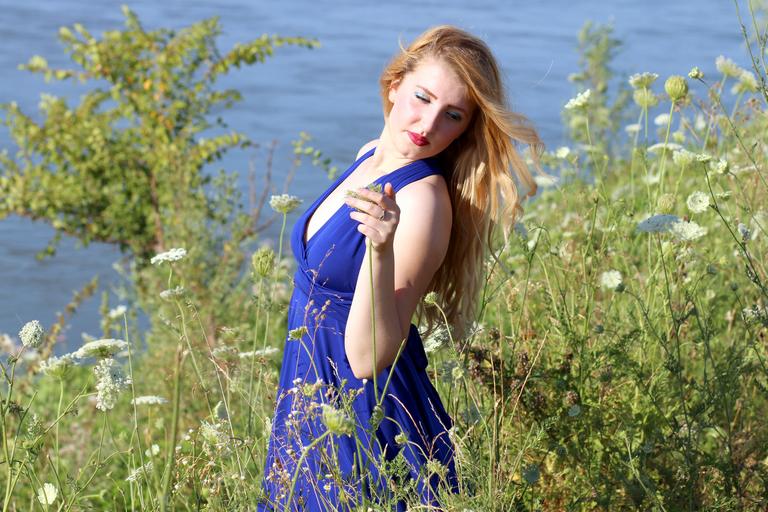 Keywords: girl dress blue lake water beauty