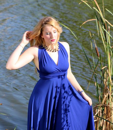 Keywords: girl dress blue lake water beauty