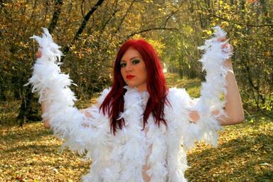 Keywords: girl feather snowflakes white red hair beauty seductive autumn forest