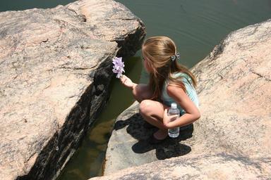 Keywords: girl flower shore play alone lonely