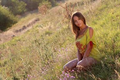 Keywords: girl grass nature in the evening bfe brown eyes beauty
