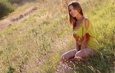 Keywords: girl grass nature in the evening bfe brown eyes beauty