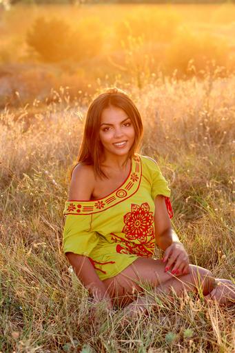 Keywords: girl grass sunset light nature in the evening bfe brown eyes beauty