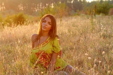 Keywords: girl grass sunset light nature in the evening bfe brown eyes beauty
