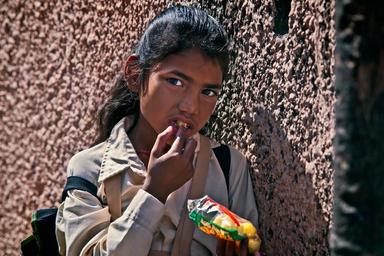Keywords: girl india travel asia young people indian girl culture pose close-up eat corn student