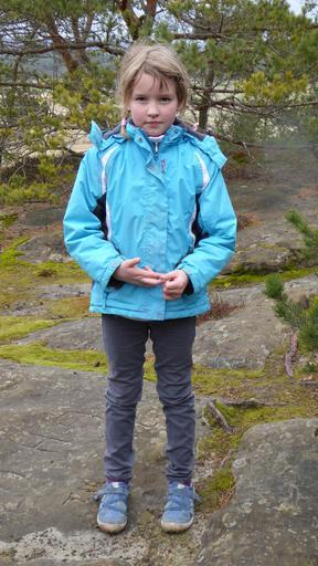 Keywords: girl jacket more leisure nature blond child on the go play childhood development blue walk