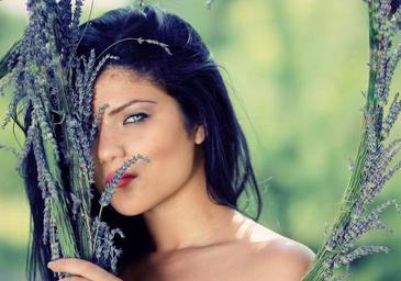 Keywords: girl lavender brunette blue eyes flowers beauty nature