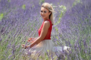 Keywords: girl lavender mov blonde dress beauty flowers nature
