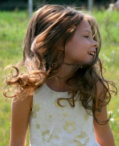 Keywords: girl long hair dynamic smile beauty summer child grass
