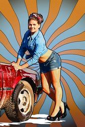 Keywords: girl pin-up pop art poster carwash car pin up washing machine