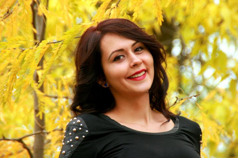 Keywords: girl portrait autumn yellow leaves beauty smile happy model