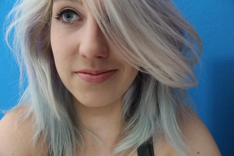 Keywords: girl portrait colorful blue hair smile close