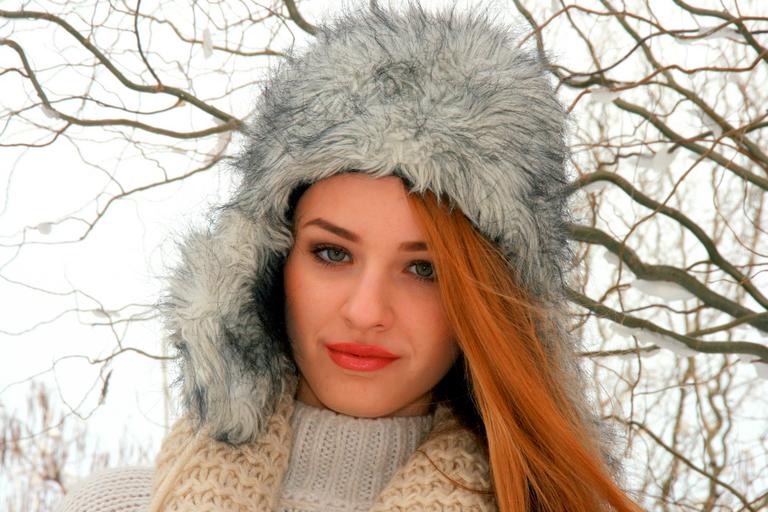 Keywords: girl portrait green eyes blonde hat winter