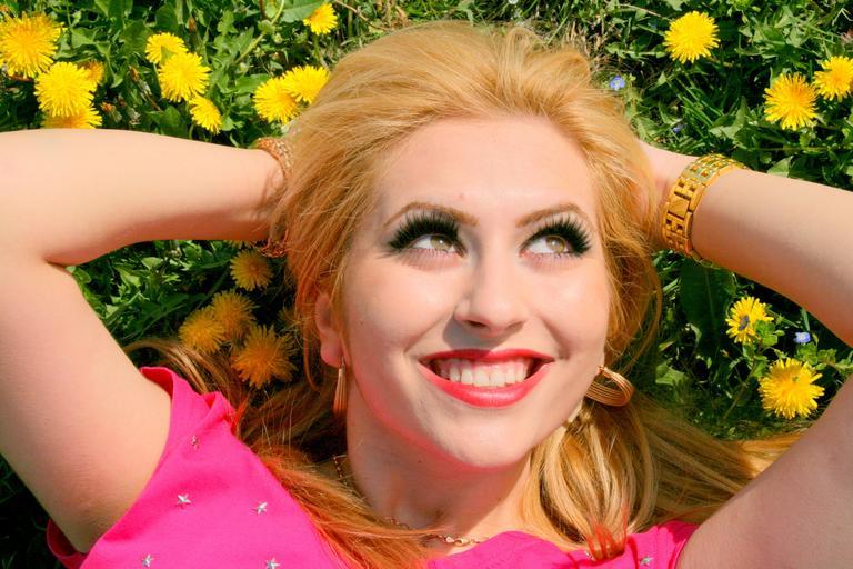 Keywords: girl portrait pink flowers seduction smile beauty blonde