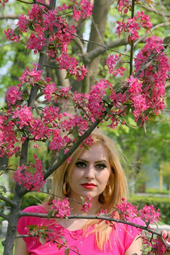 Keywords: girl portrait pink flowers tree seduction smile beauty blonde