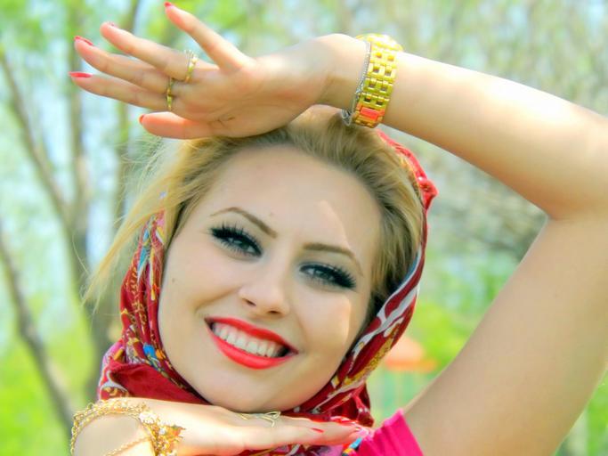 Keywords: girl portrait red seduction smile beauty scarf blonde
