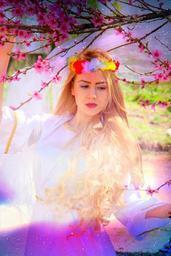 Keywords: girl princess spring blond hair dress portrait beauty flowers tree woman story