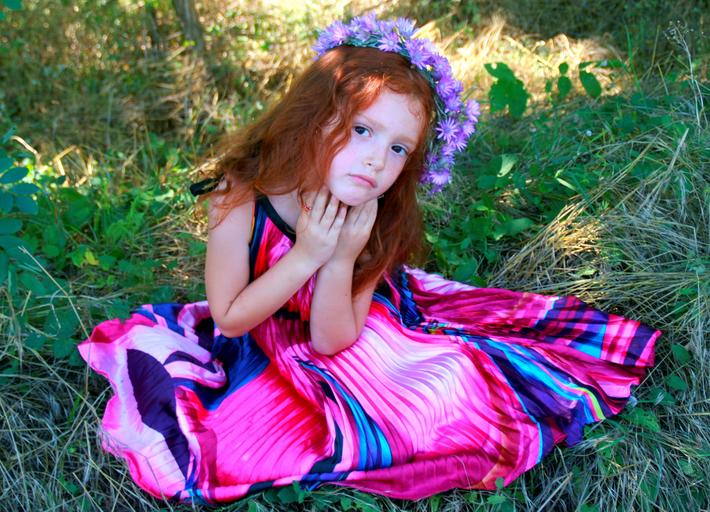 Keywords: girl red hair wreath dress mov beauty child portrait
