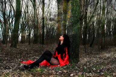 Keywords: girl red sensual smoke the haze forest red riding hood